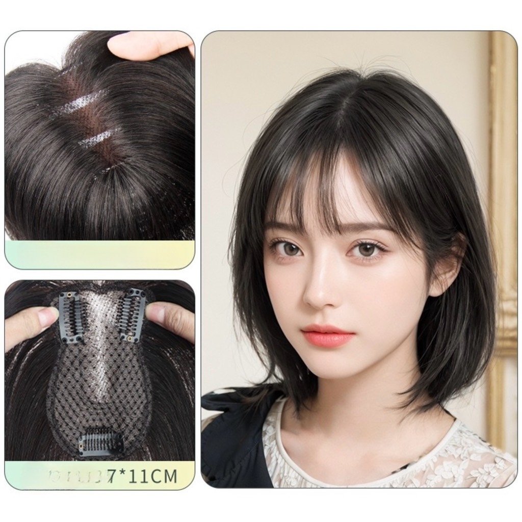 H6060 TÓC THẬT 2 MÁI CÚP 30CM - NGÔI LỆCH