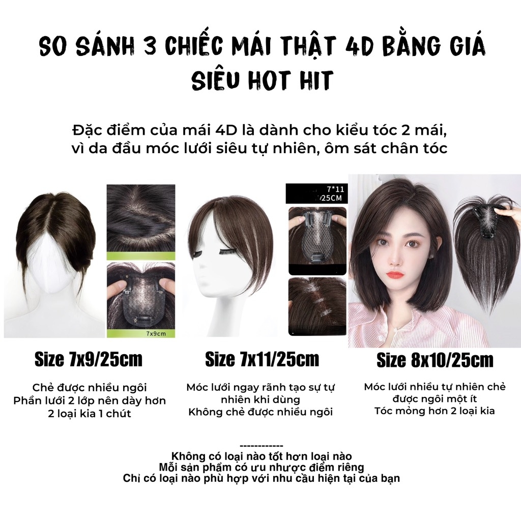 MÁI 3D TÓC THẬT SIZE 4X8CM