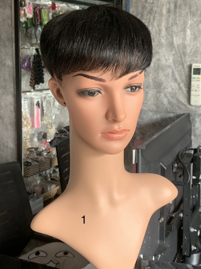 M01: MÁI NAM TÓC THẬT SIZE 16*18 (CÓ DA ĐẦU)-MÀU ĐEN